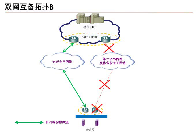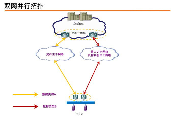 A. The headquarters and branches are all equipped with dual routers which work in hot backup mode ensured by the Hot Standby Router Protocol (HSRP), thus ensuring hardware redundancy.